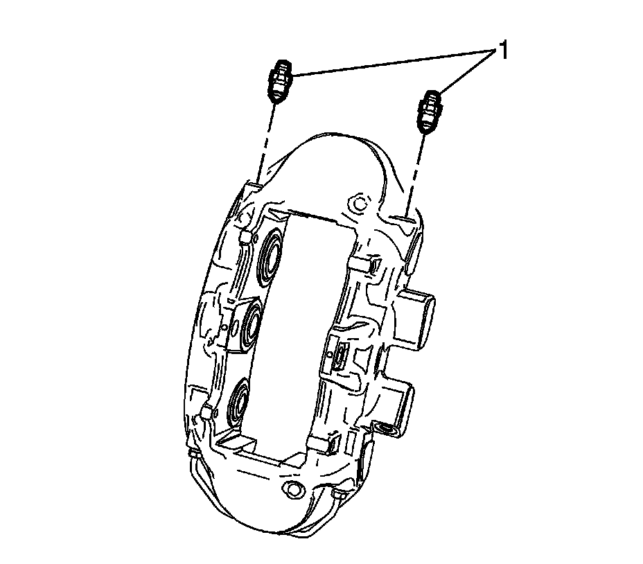 5. Remove the brake caliper bleeder valves (1).