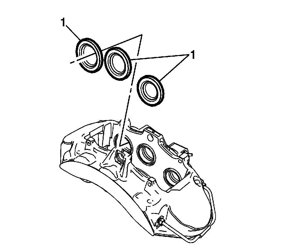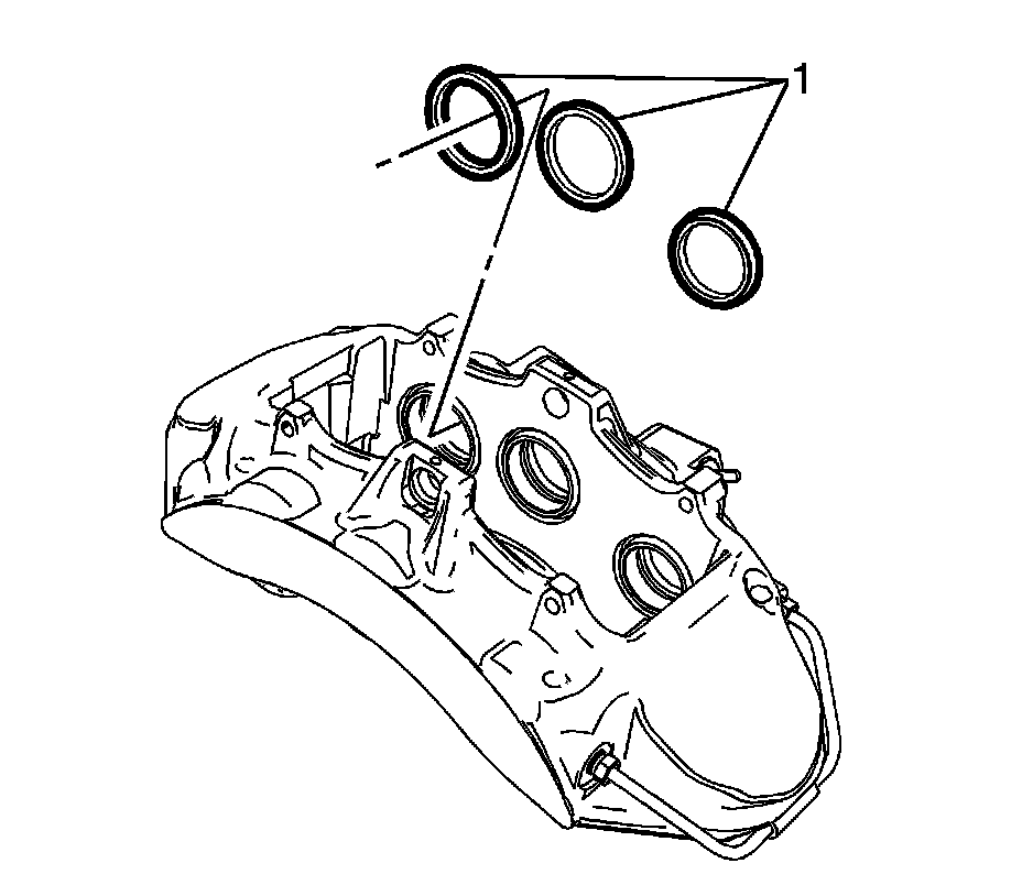 2. Lubricate the new brake caliper piston seals (1) with GM approved or equivalent brake fluid from a clean, sealed brake fluid container.