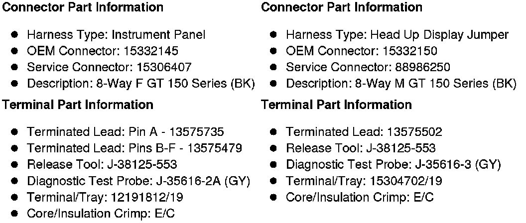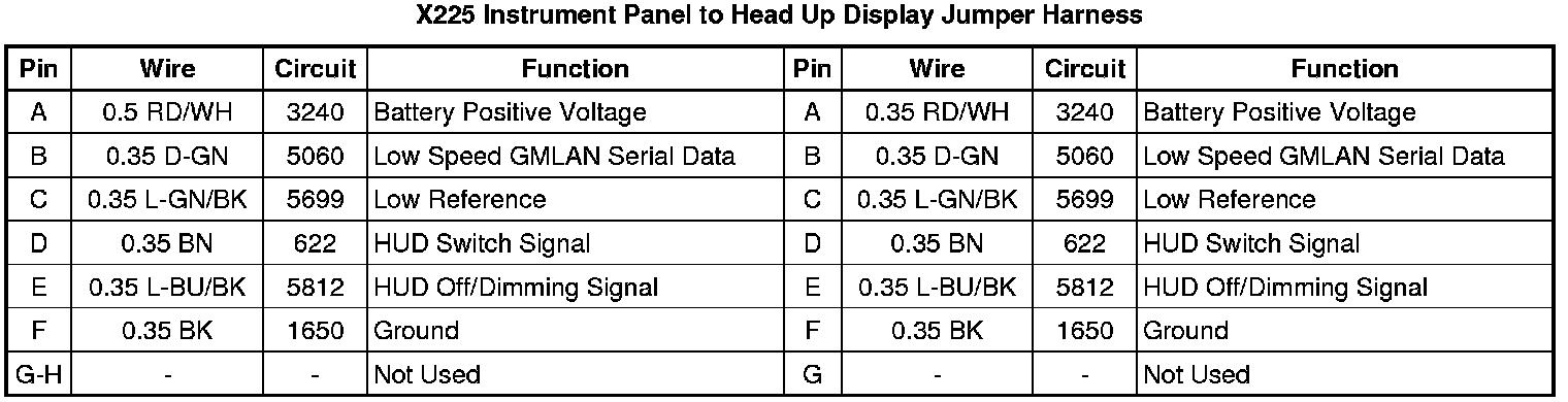 X225 Instrument Panel to Head Up Display Jumper Harness