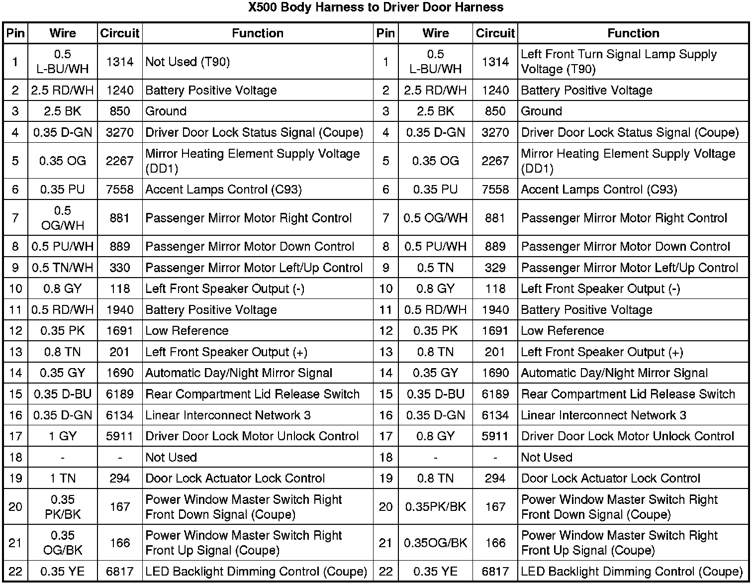 X500 Body Harness to Driver Door Harness
