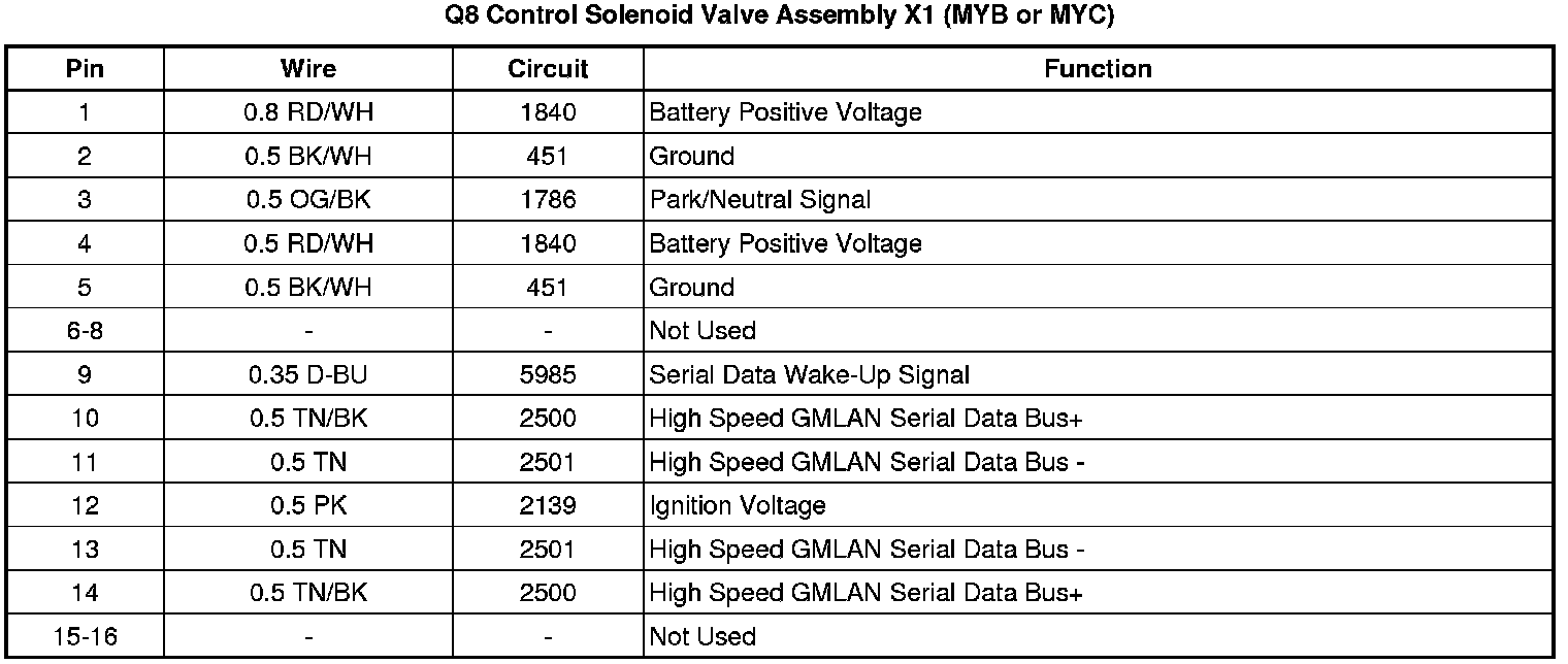 Q8 Control Solenoid Valve Assembly X1 (MYB or MYC)