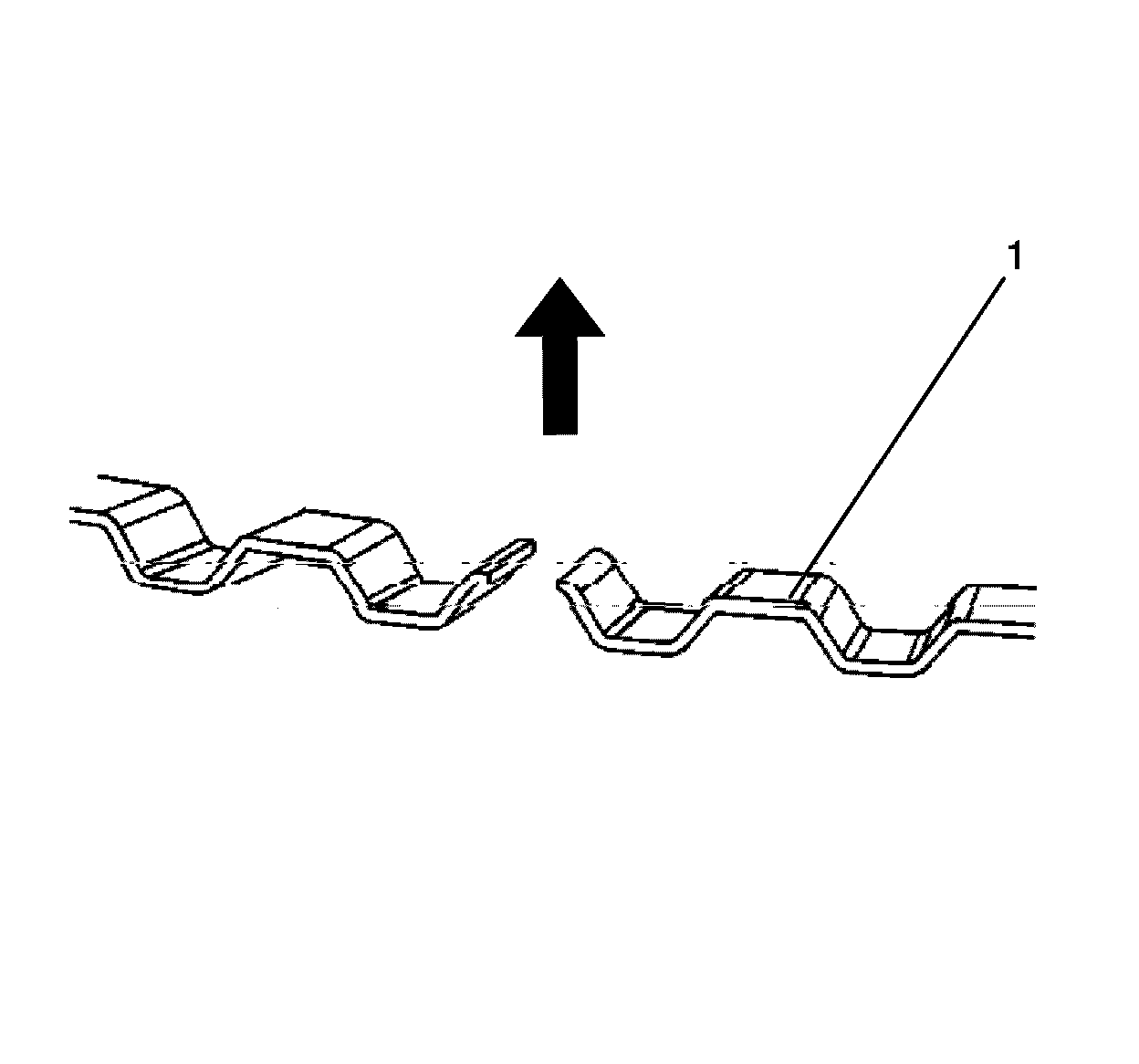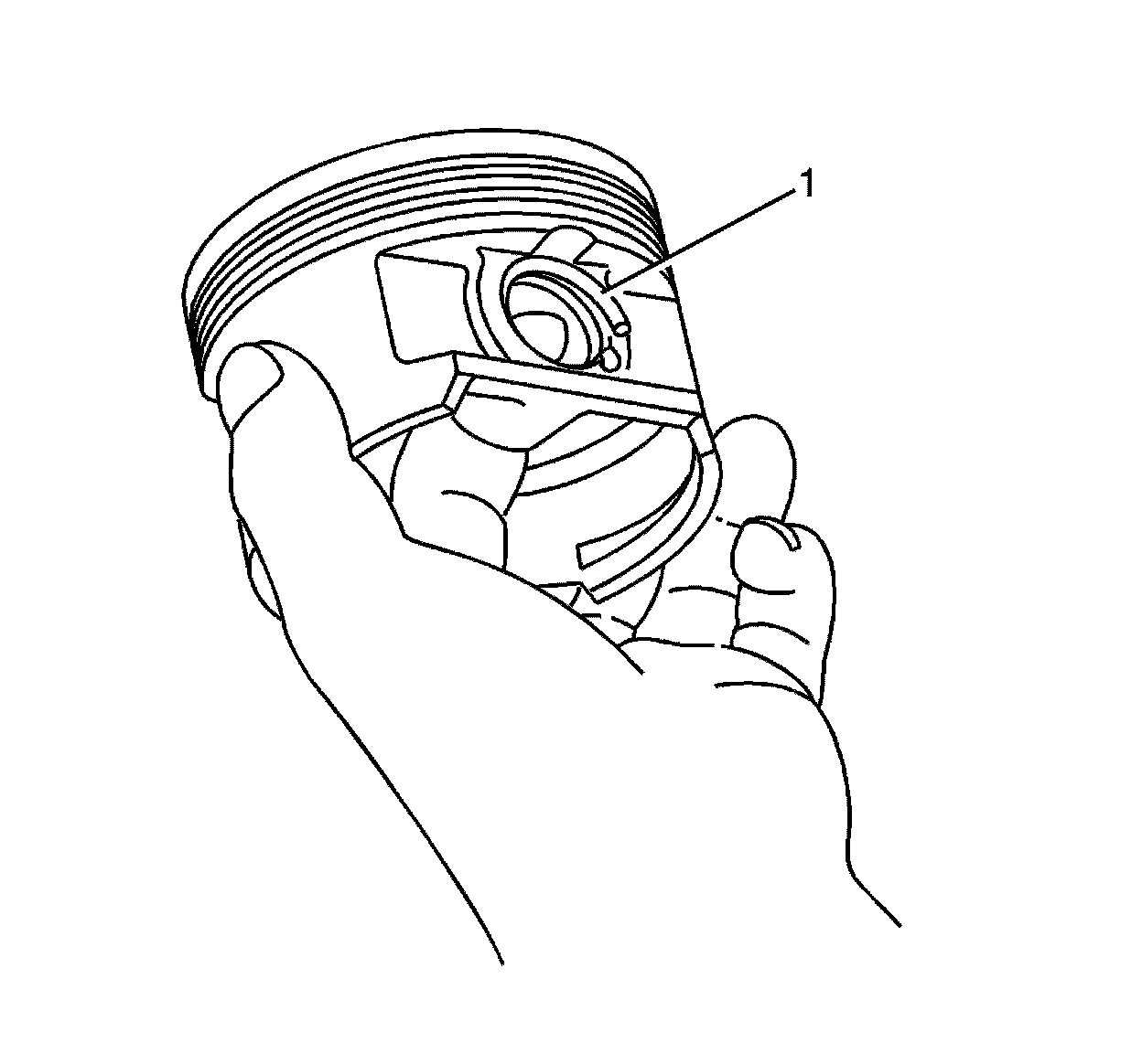 1. Correctly orient the oil control ring expander (1) as shown before installation. The ends of the oil control ring expander (1) must be facing toward the top of the piston.
