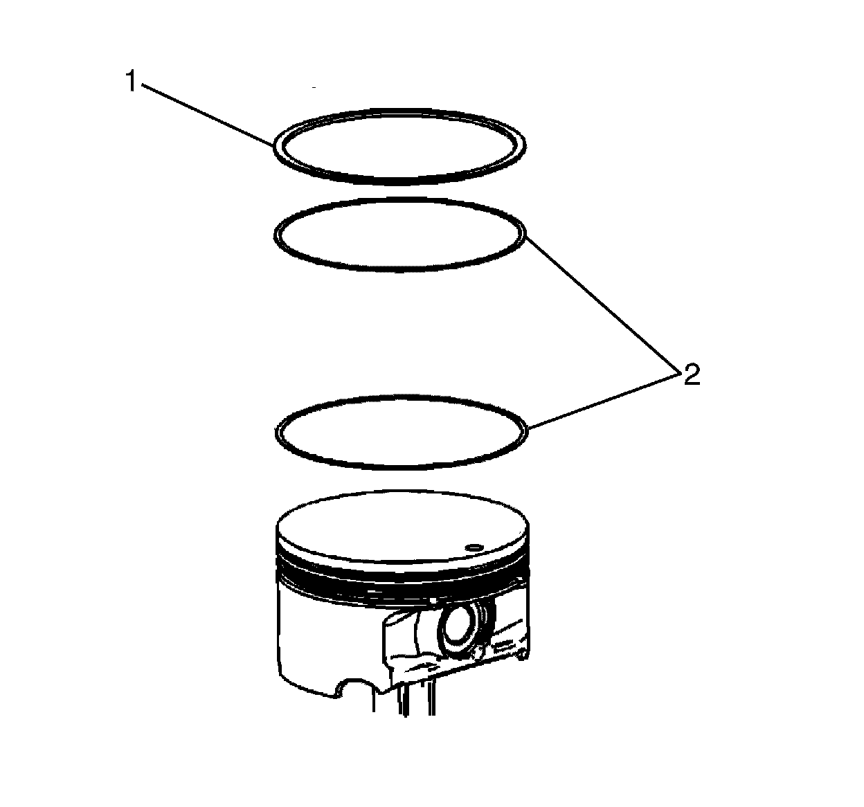Install the 2 oil scraper rings (1). Expand the rings only enough to clear the piston diameter.