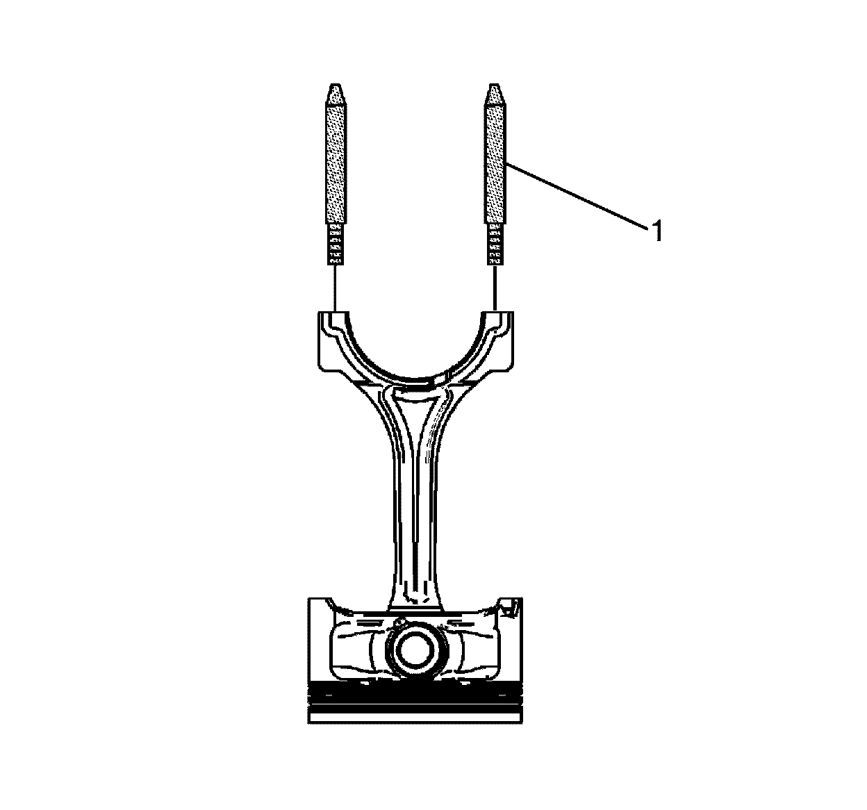 4. Install the J 41556 - guide set (1) into the connecting rod bolt holes.
