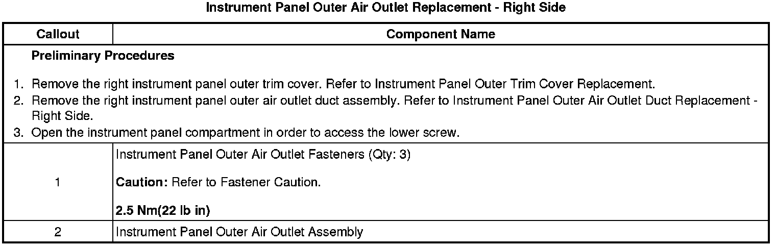 Instrument Panel Outer Air Outlet Replacement - Right Side