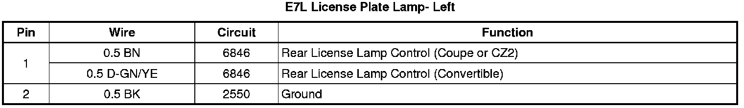 E7L License Plate Lamp- Left