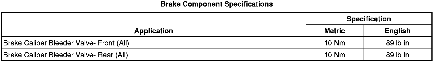 Brake Component Specifications