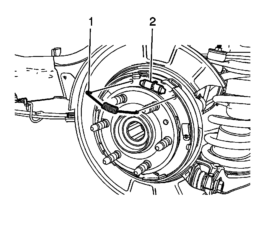 6. Remove the park brake shoe adjuster (2).
