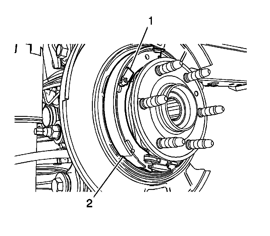4. Retract the park brake shoe adjuster to ease removal. Refer to Parking Brake Adjustment Adjustments.