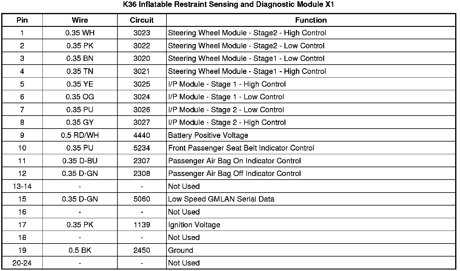 K36 Inflatable Restraint Sensing and Diagnostic Module X1