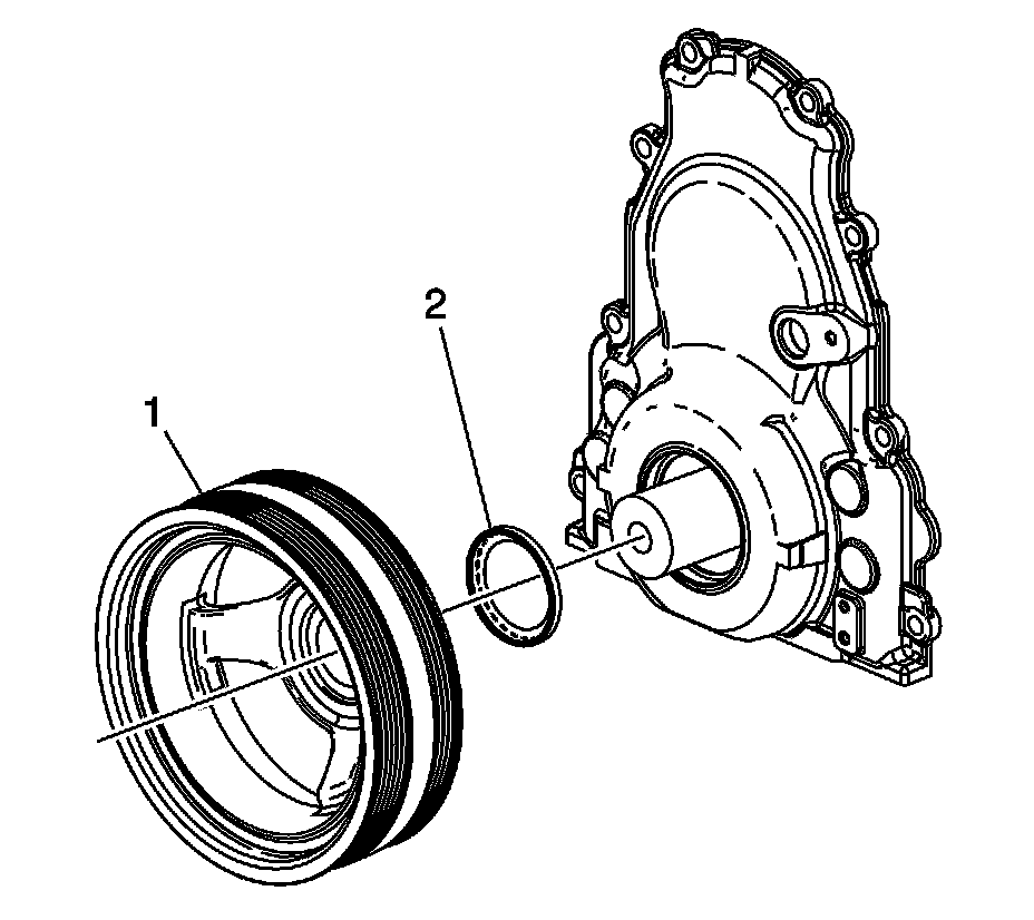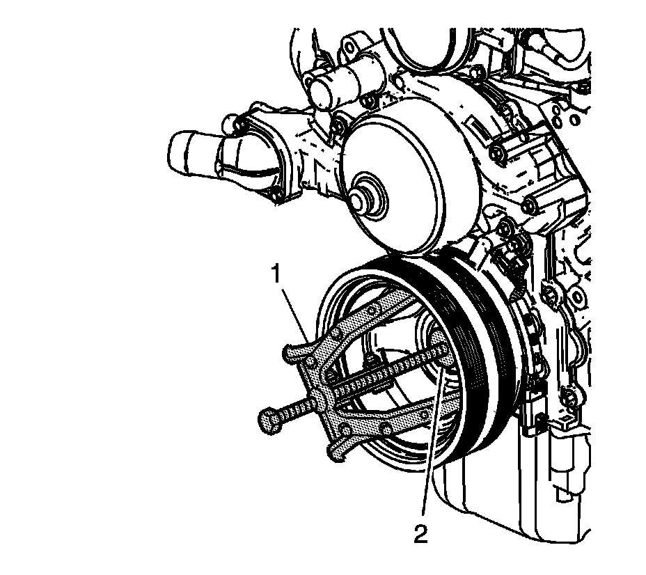 3. Use the J 41816 - remover (1) and the J 41816-2 - protector (2) in order to remove the crankshaft balancer.