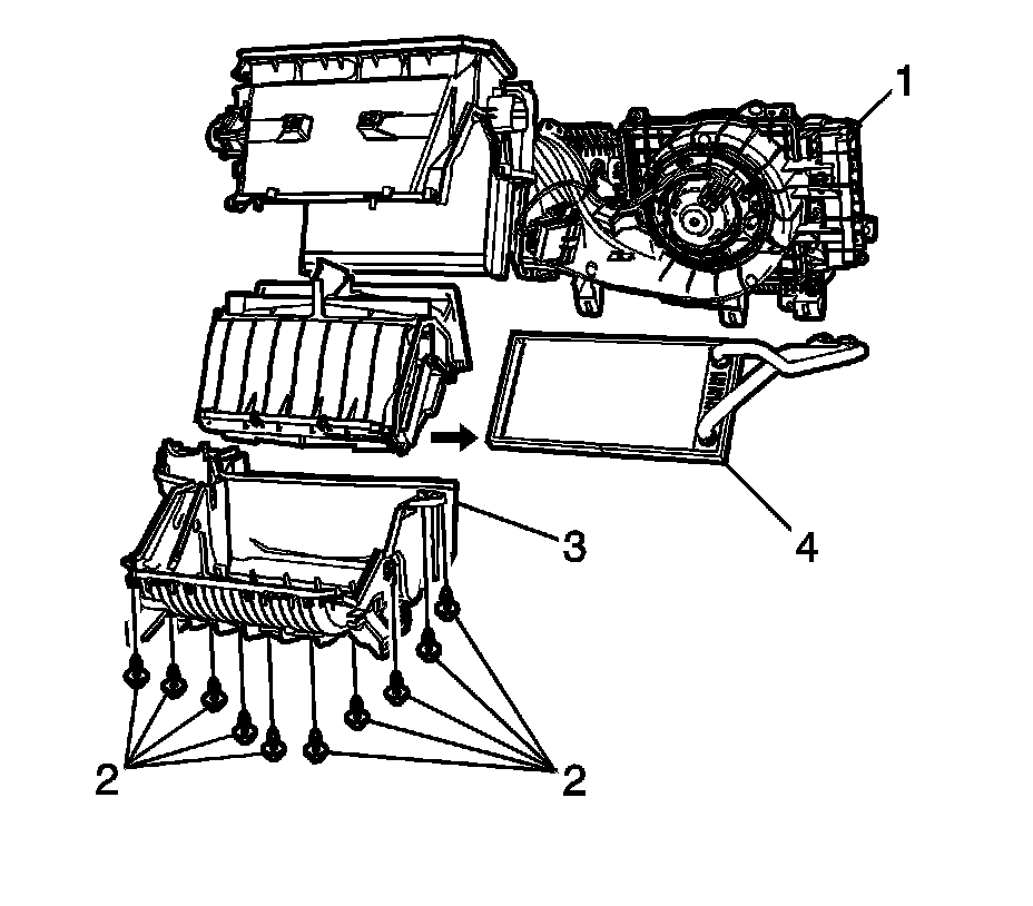 1. Remove the HVAC module assembly. Refer to Air Conditioning and Heater Module Assembly Removal and Installation Air Conditioning and Heater Module Assembly.