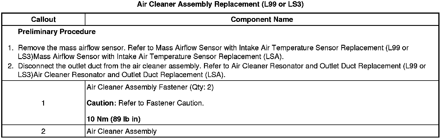 Air Cleaner Assembly Replacement (L99 or LS3)