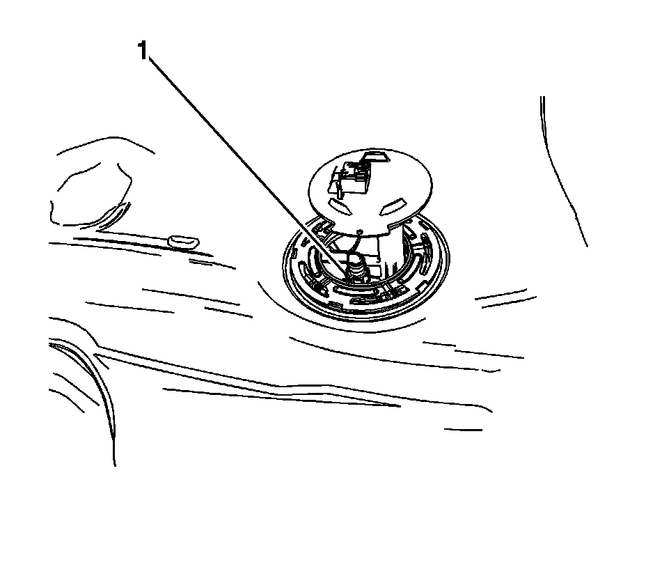 2. Partially install the secondary fuel pump module in order to connect the fuel transfer hose quick connect fitting (1). Refer to Plastic Collar Quick Connect Fitting Service Procedures.