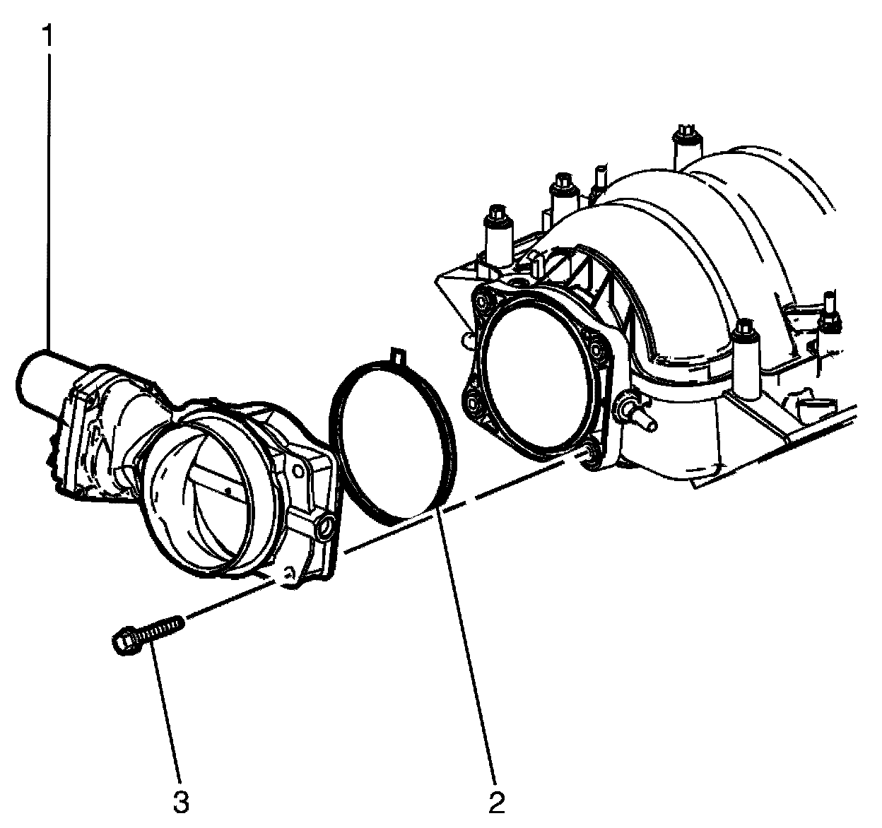 3. Remove the throttle body to intake manifold retaining bolts (3).
