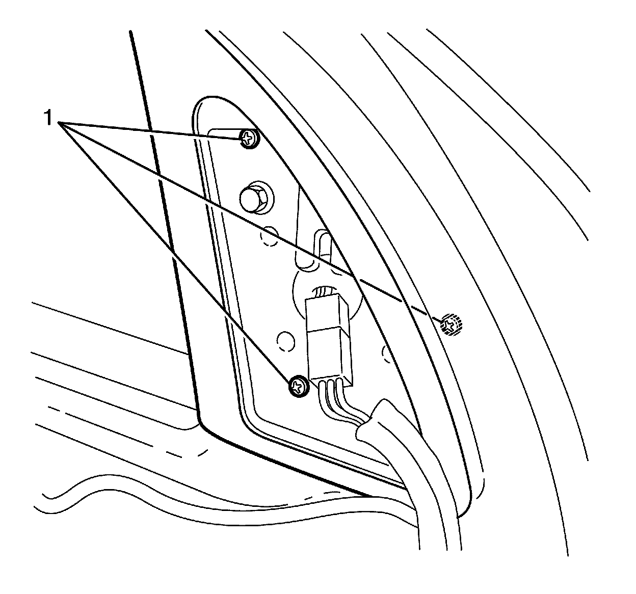 3. Connect the mirror to door harness electrical connector (1).