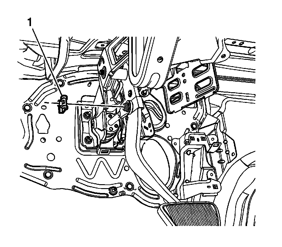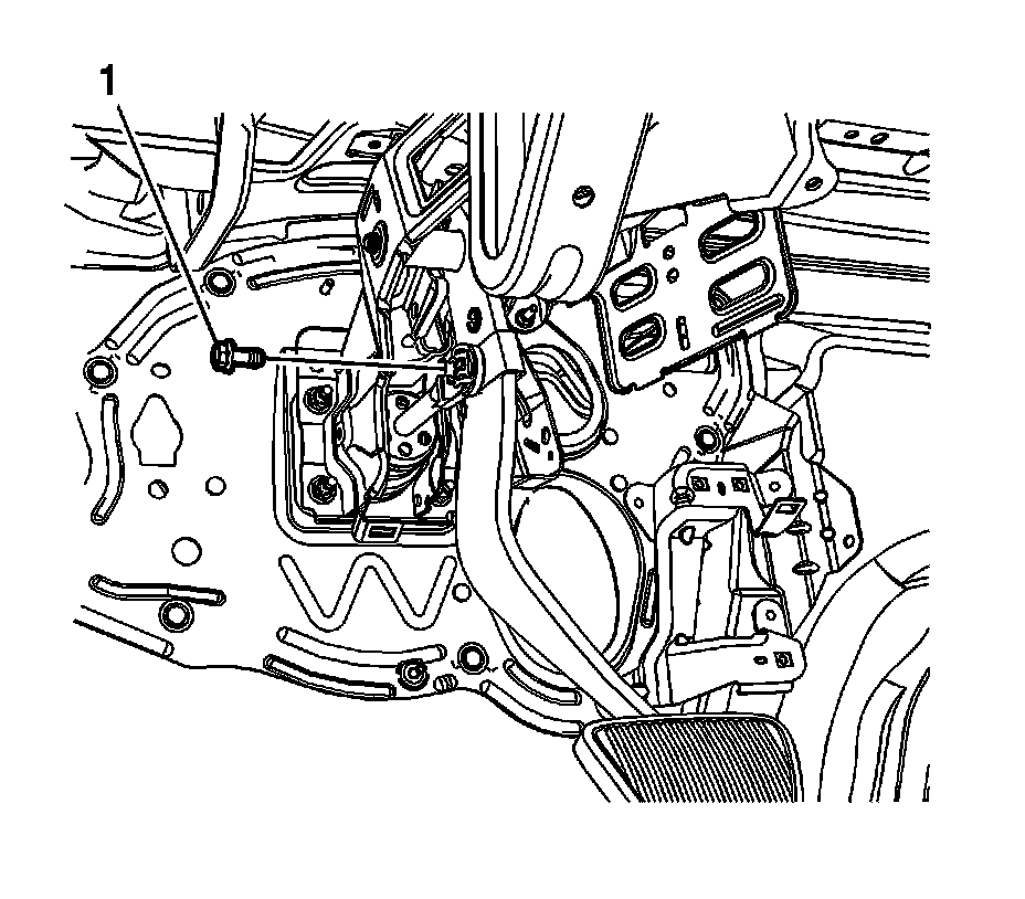 6. Remove the brake booster pushrod retainer bolt (1).