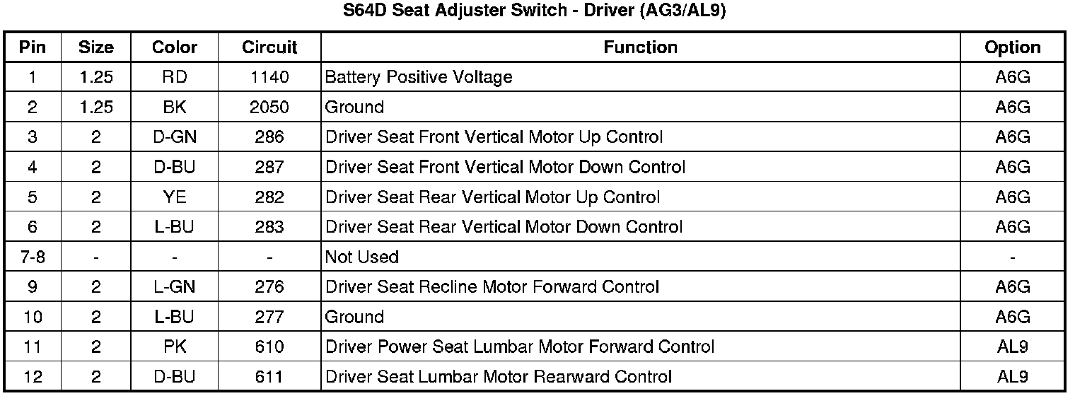 S64D Seat Adjuster Switch - Driver (AG3/AL9)