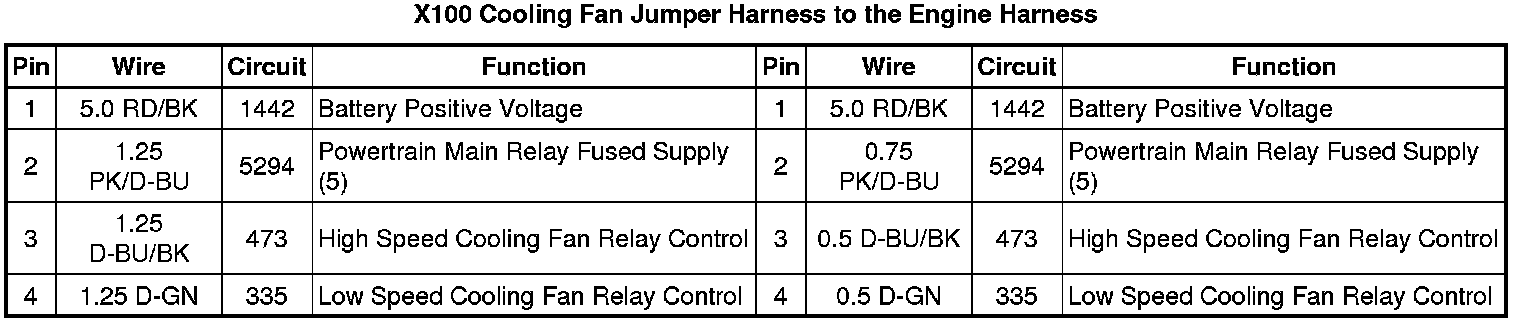X100 Cooling Fan Jumper Harness to the Engine Harness