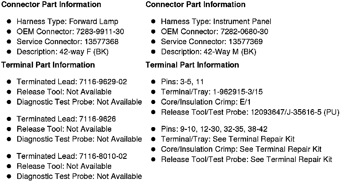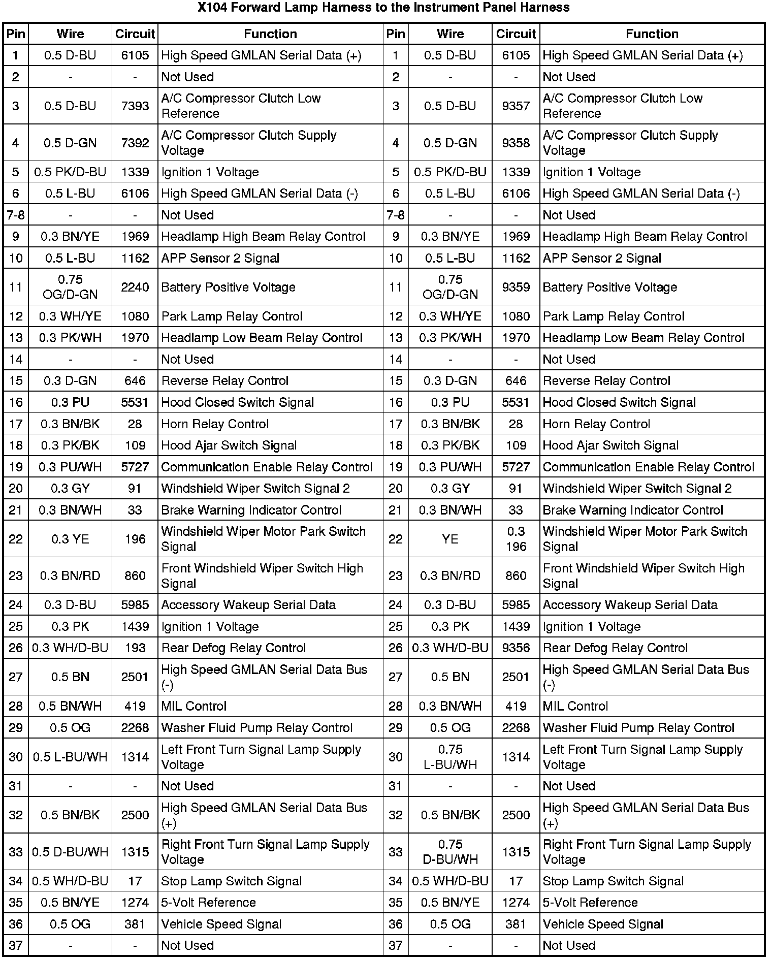 X104 Forward Lamp Harness to the Instrument Panel Harness