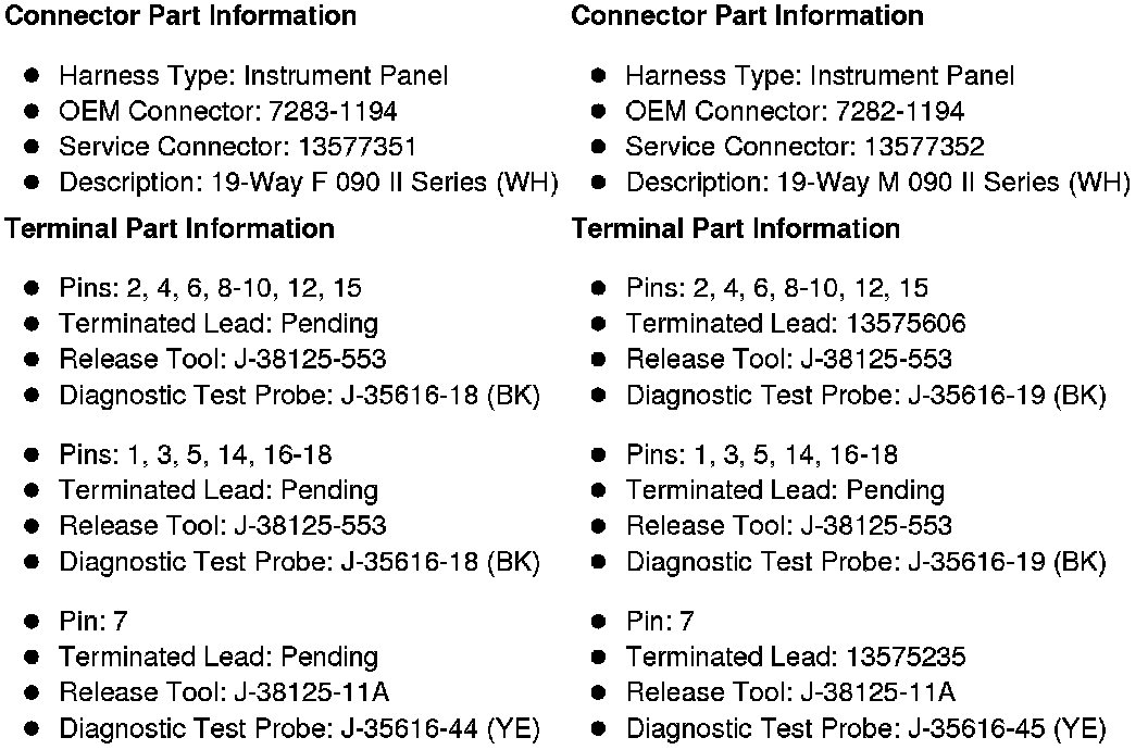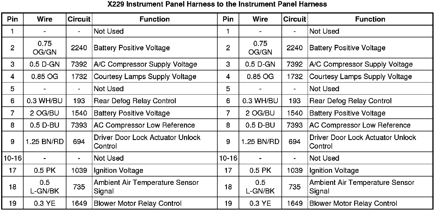 X229 Instrument Panel Harness to the Instrument Panel Harness