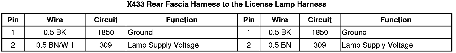 X433 Rear Fascia Harness to the License Lamp Harness