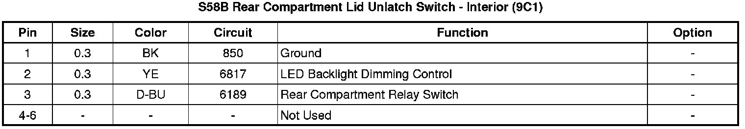 S58B Rear Compartment Lid Unlatch Switch - Interior (9C1)