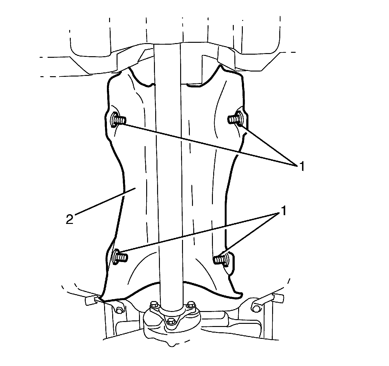 4. Remove the fuel tank heat shield (2).