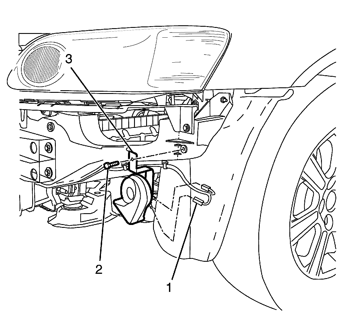 5. Pull the horn assembly (3) outward to remove it from the vehicle.