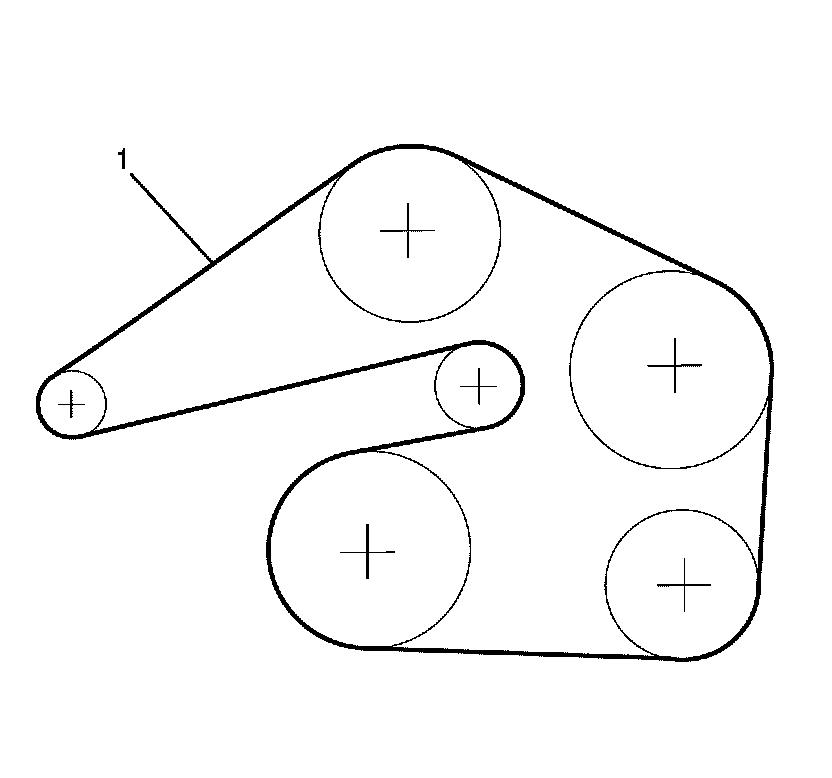 1. Install and correctly route the drive belt (1) around the following: