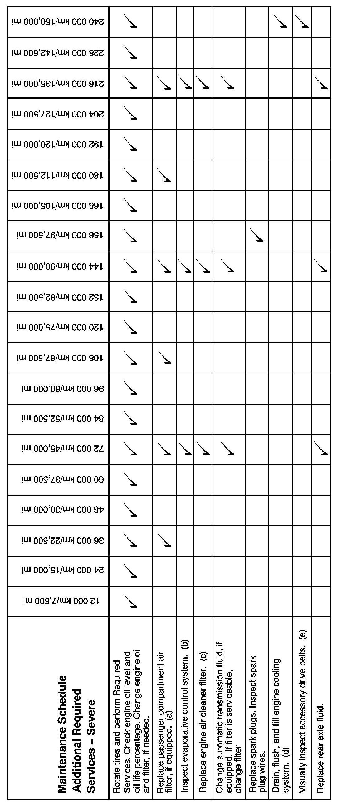 Footnotes - Maintenance Schedule Additional Required Services - Severe