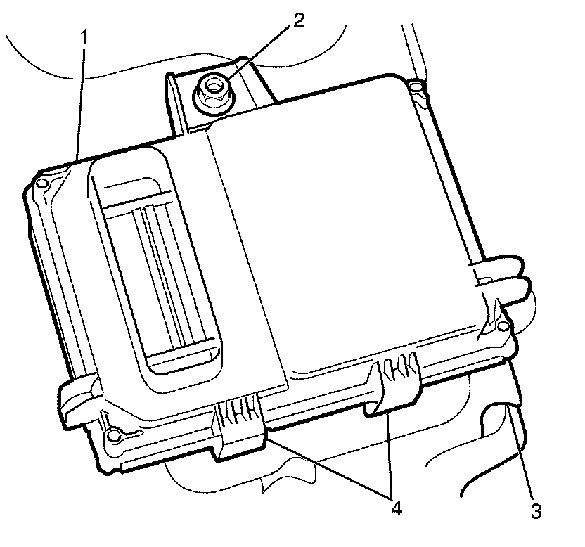 1. Attach the fuel pump flow control module (1) to the battery tray (3).