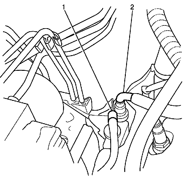 10. Disconnect the EVAP pipe (1). Refer to Plastic Collar Quick Connect Fitting Service Procedures.