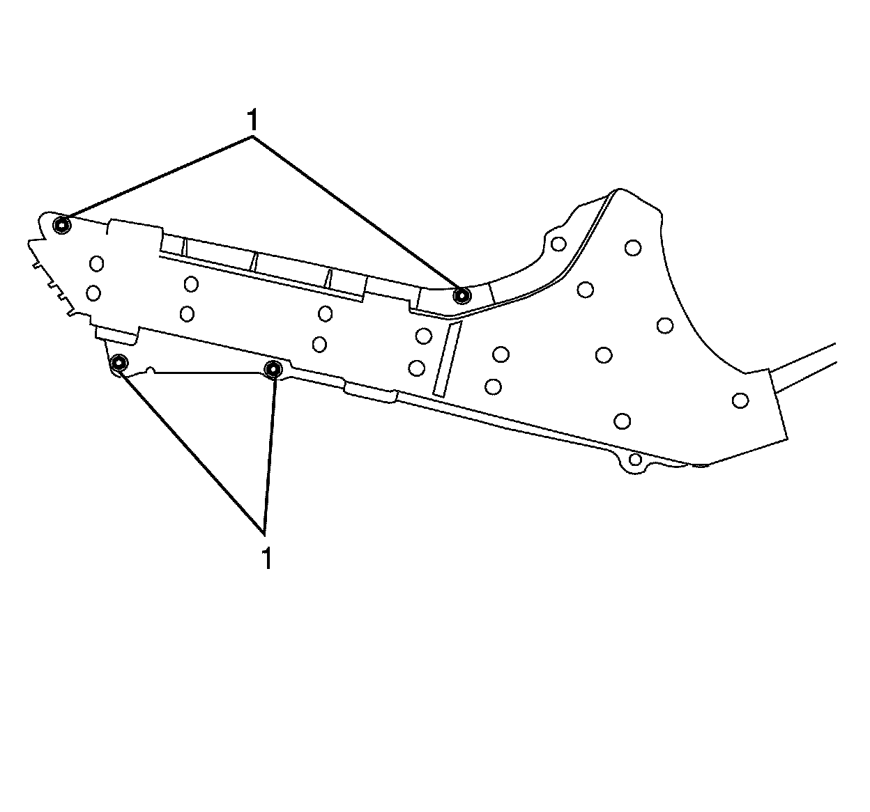 11. Remove the front fuel/brake pipe assembly protection plate (1) from the vehicle.