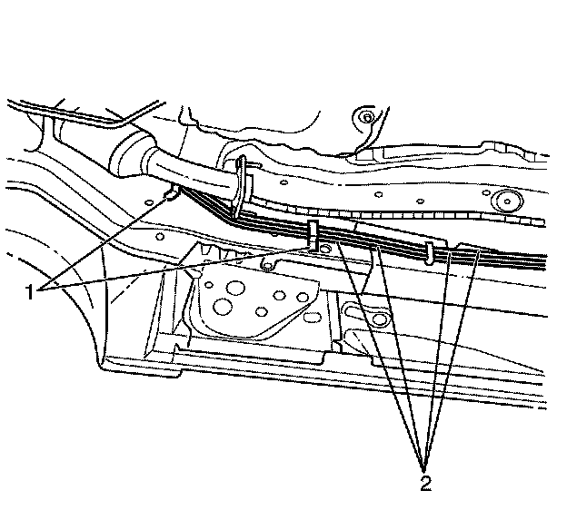 2. Install all the fuel/brake pipe retainers (1) to the fuel/brake pipe assembly (2).