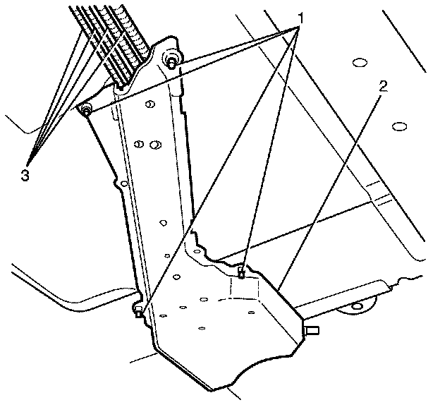 3. Install the front fuel/brake pipe assembly protection plate (1) to the vehicle and tighten the bolts to 22 Nm (16 lb in).