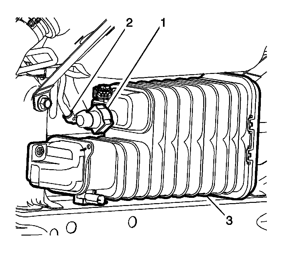 5. Connect the EVAP emission hoses to the EVAP emission canister (3). Refer to Plastic Collar Quick Connect Fitting Service Procedures.