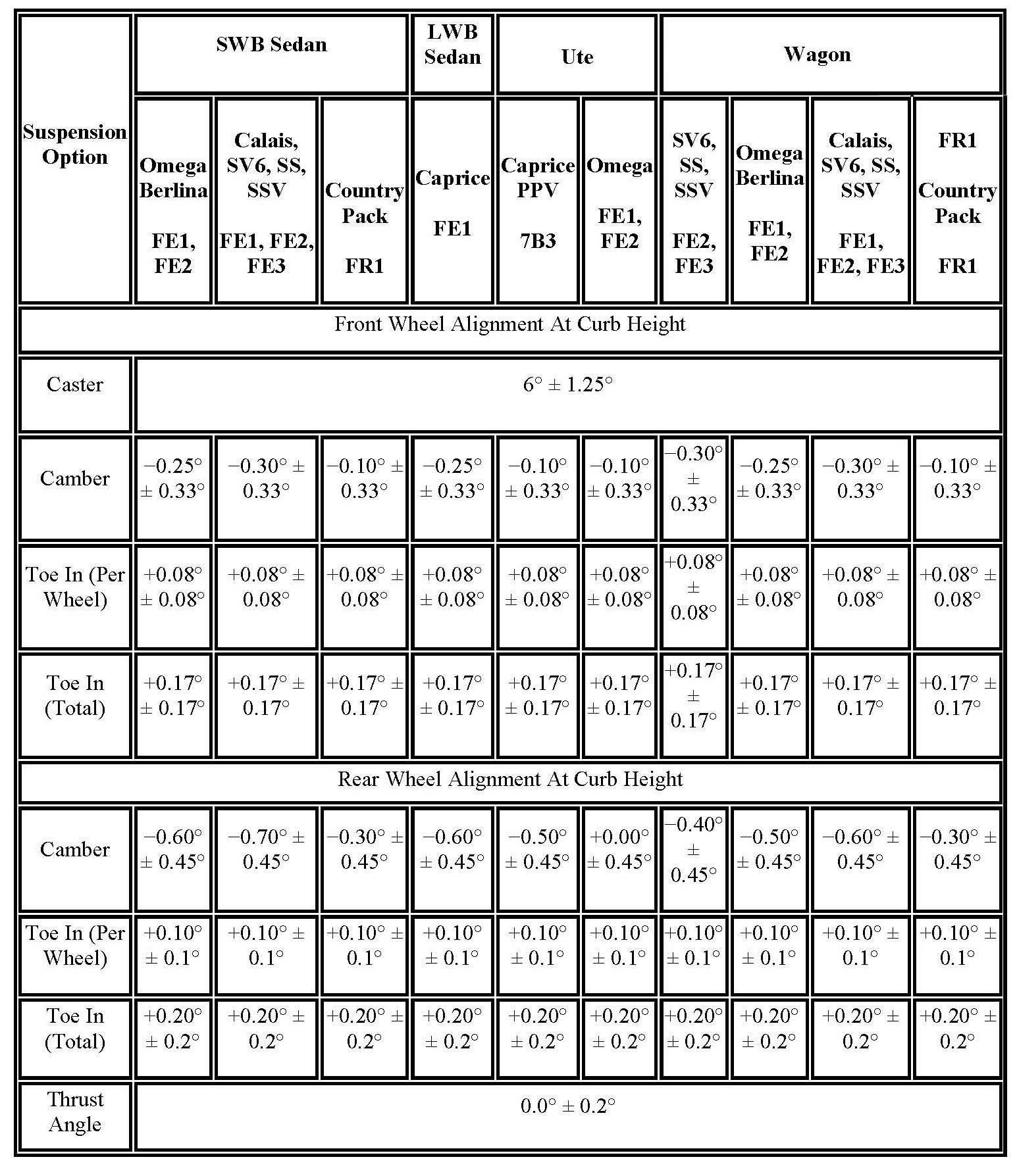Wheel Alignment Specifications