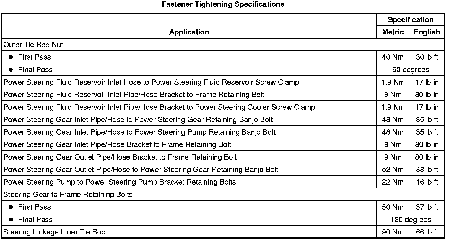 Fastener Tightening Specifications