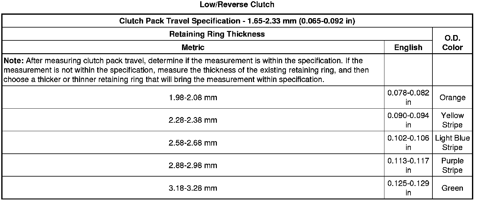 Clutch Backing Plate Retaining Ring Specifications (6L45)