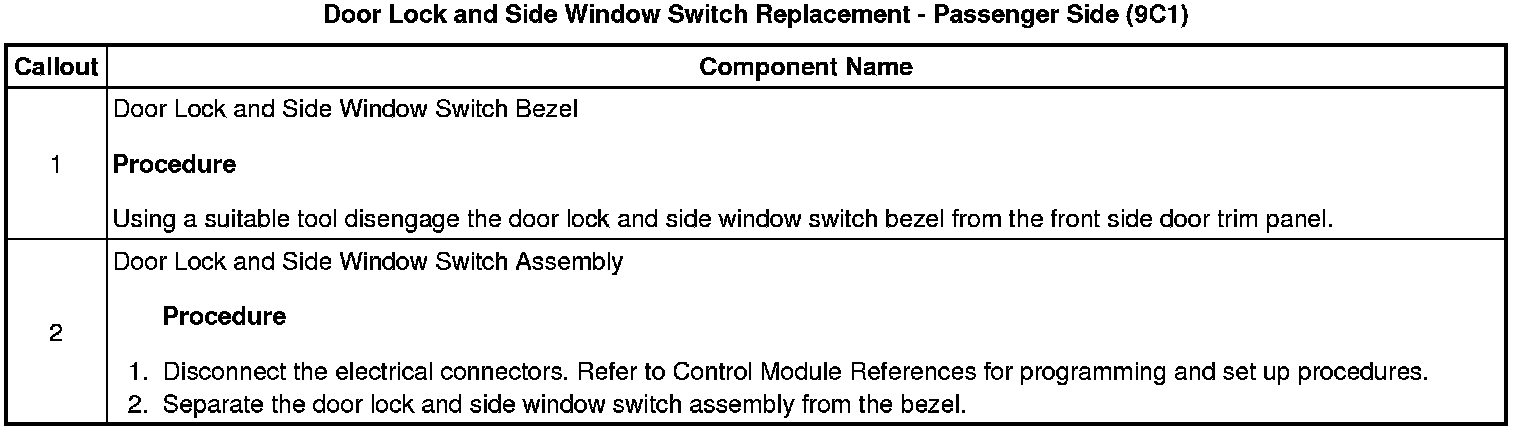 Door Lock and Side Window Switch Replacement - Passenger Side (9C1)