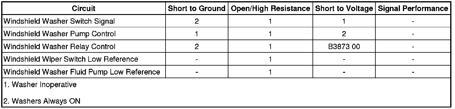 • If the washer pump does not activate, refer to Washer Pump Circuit Malfunction.