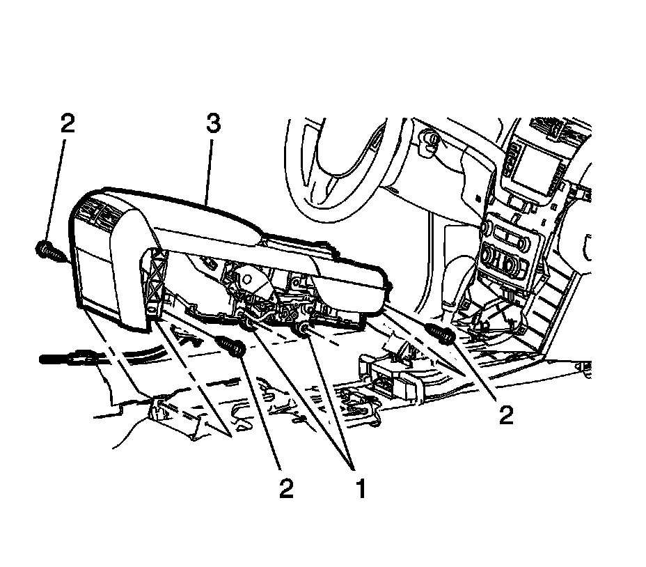 7. Remove the instrument panel center trim panel. Refer to Instrument Panel Center Trim Panel Replacement (9C3) Instrument Panel Center Trim Panel Replacement (9C3)Instrument Panel Center Trim Panel Replacement (9C1) Instrument Panel Center Trim Panel Replacement (9C1).