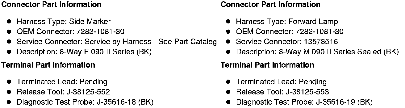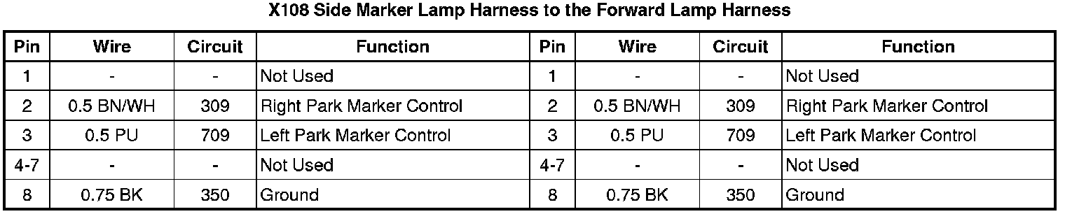 X108 Side Marker Lamp Harness to the Forward Lamp Harness