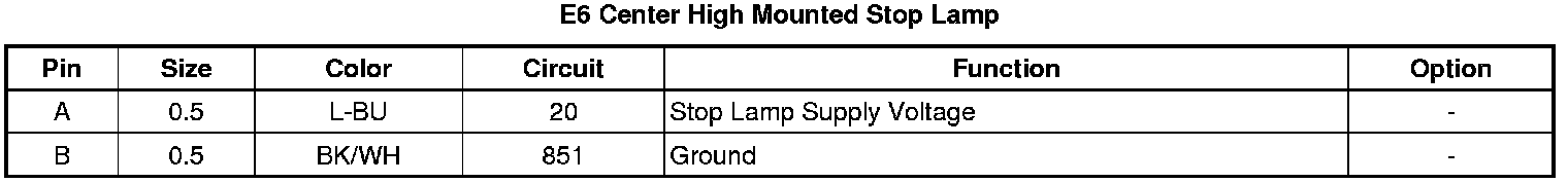 E6 Center High Mounted Stop Lamp
