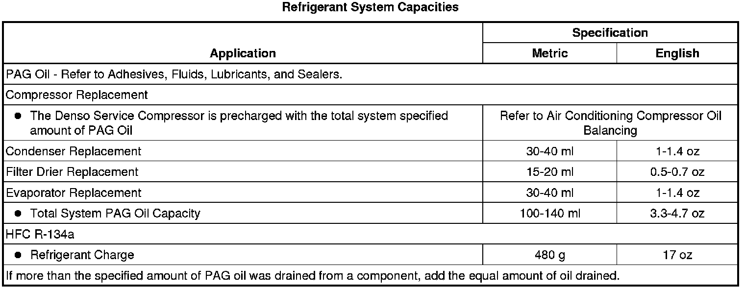 Refrigerant: Specifications