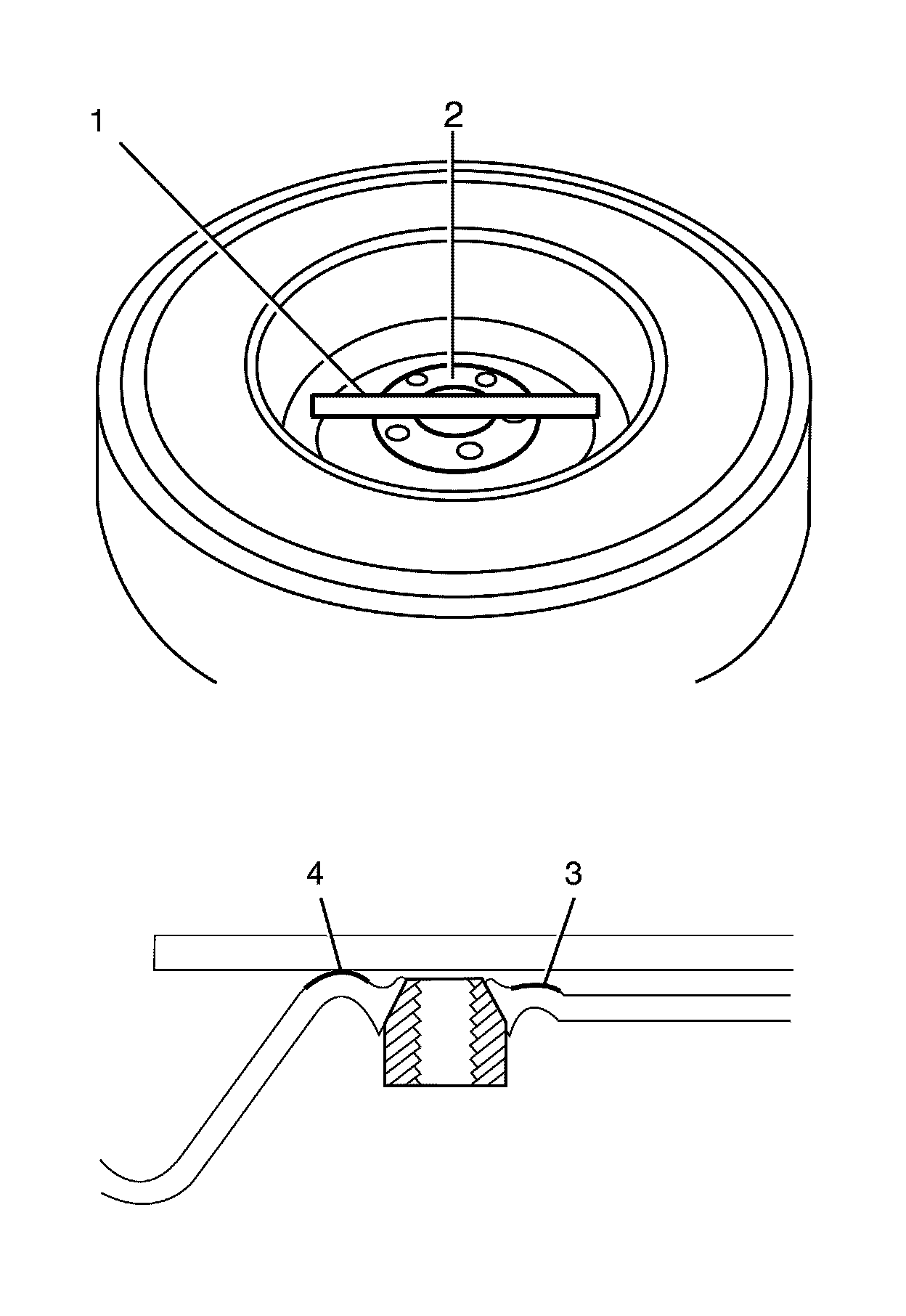 If you can rock the straight edge (1) the mounting surface (2) is bent and the wheel must be replaced.