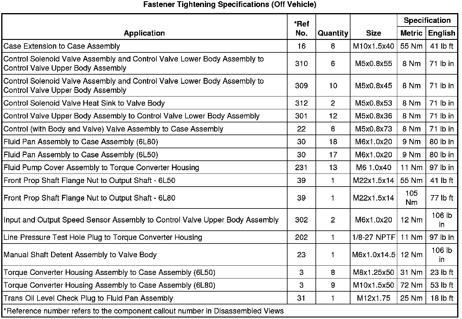 Fastener Tightening Specifications (Off Vehicle)