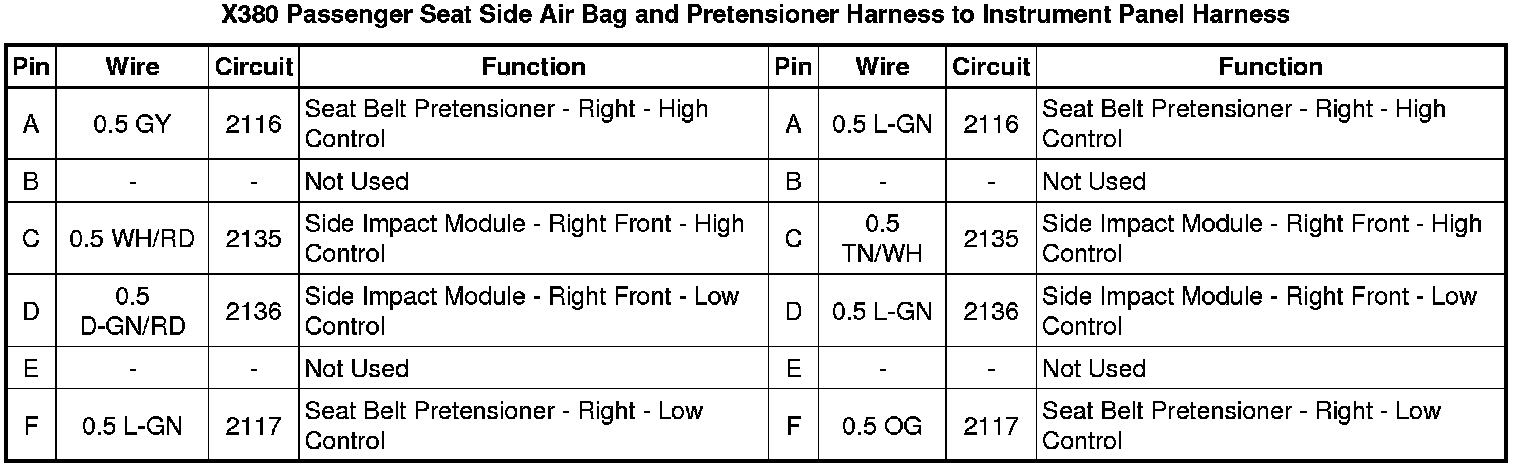 X380 Passenger Seat Side Air Bag and Pretensioner Harness to Instrument Panel Harness