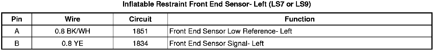 Inflatable Restraint Front End Sensor- Left (LS7 or LS9)